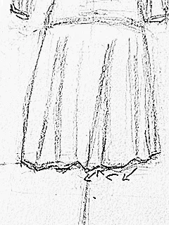 I drew rounded curves on the blouse going around the neck of the mannikin and over her shoulder's to give my drawing more depth.