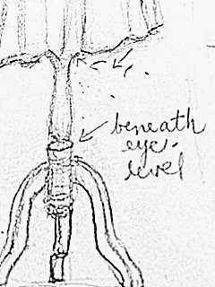 Once I had the measurements on my paper I started drawing the tree limbs. I tried to think in terms of their shapes and kept telling myself this is a Y shape, this is a V shape, etc. I kept in mind that the branches start out thicker and gradually get thinner and thinner as they reach the top of the tree. I also kept telling myself, this tree doesn't have to be perfect, it just has to look like a tree. I don't have to draw every branch, just enough so it looks tree like.