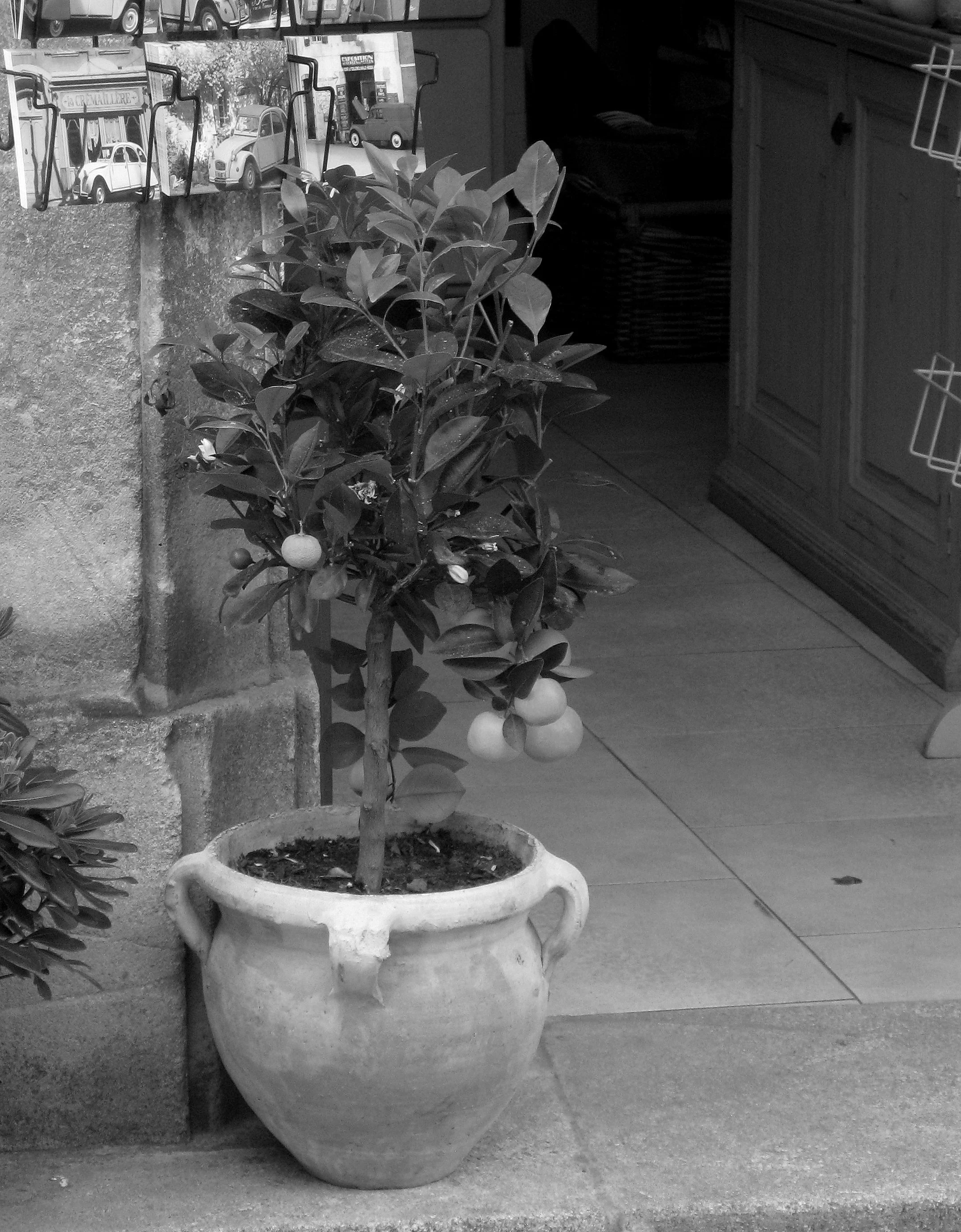 The photo below was taken on a trip to Provence, France in the town of Rousillion. Even though the photo is not very complicated, it still needs simplification for my tastes to make a good drawing. My plan, before I have put pencil to paper is to leave out the little details and concentrate on the most interesting shapes. Also, I do not plan to draw every leaf on the tree. I plan to mass a lot of them together. Let's see how the drawing goes. In the following pictures, I will explain some ways to make the drawing process easier for you.