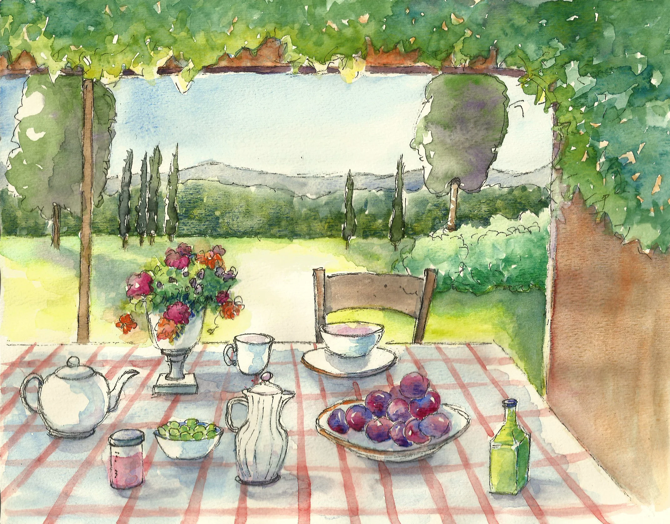Lunch will start with toasted bread drizzled with fresh olive oil, that has just been pressed from the Fall olive harvest.......wait! This isn't a delusional dream, this is a reality dream. On Oct. 10 I will be in Tuscany teaching a watercolor workshop and I will be eating daily. It will be olive harvest season in Tuscany and I will be able to taste the freshly pressed olive oils.